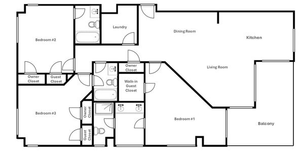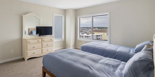 The Third Bedroom has two twin XL beds. It features a full bath that can also be accessed from the hallway. Like the second bedroom it has two windows, a rarity in buildings like this.